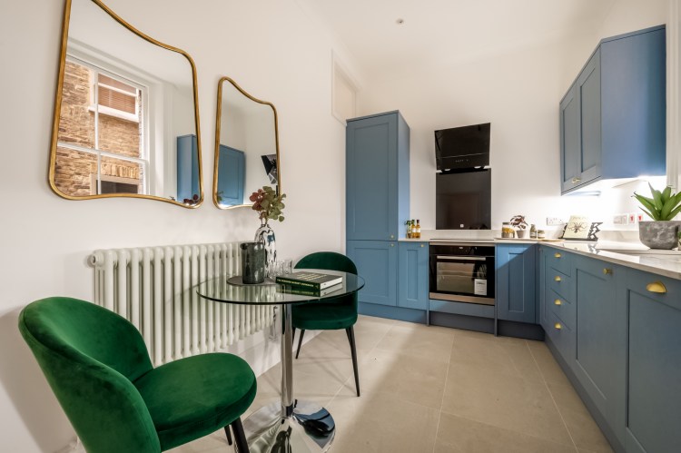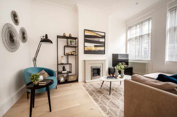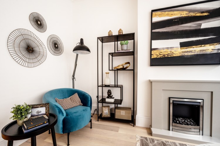 A redecoration of this elegant Victorian flat, blue and gold accents brings this home to a next level. The period features were carefully refurbished and new vintage style fittings added to complete the look.