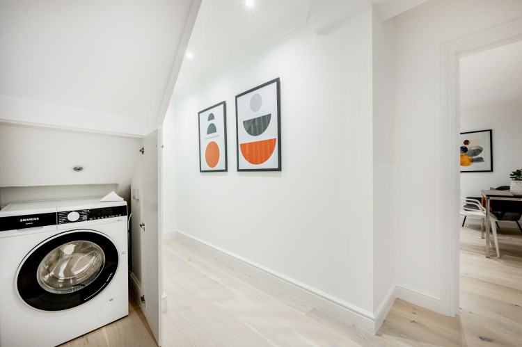 This lovely family home has been completely refurbished, using neutral soft tons with blue accents, built-in furniture to maximise storage and an overall feel of modern living. New guest toilet built under stairs for convenience and privacy.