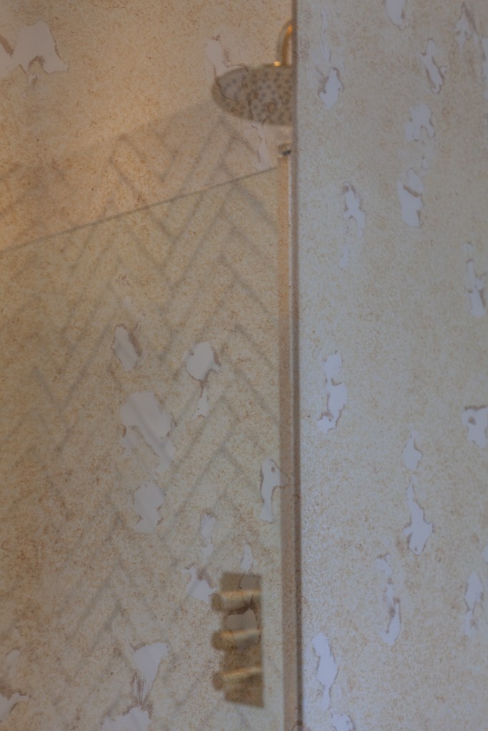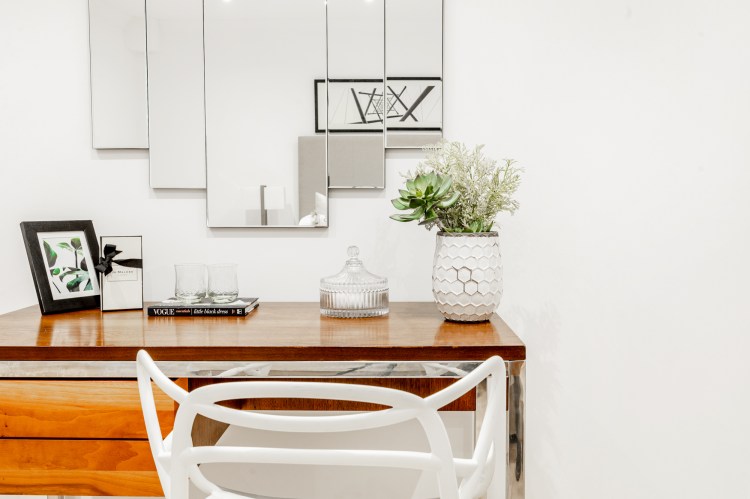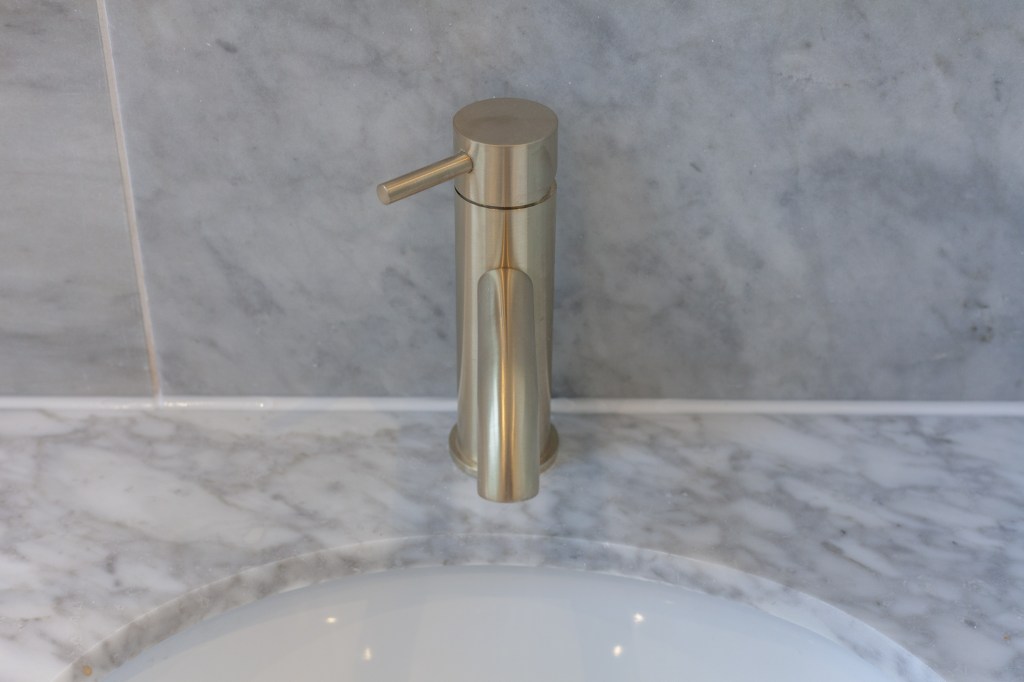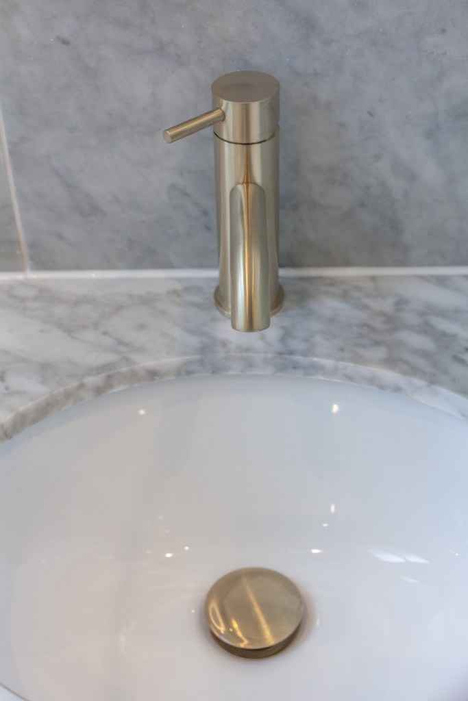 An old and tired bathroom was transformed into a classy and elegant one, using golden accents and vintage deco.
